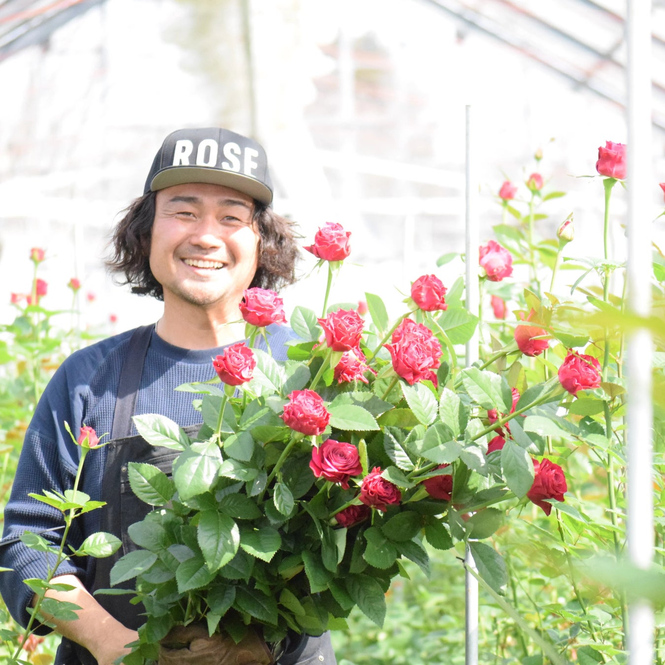 1700坪の温室で、年間を通じて20種類以上のバラを育てるバラ農家。いばらきフラワーパークのマーケットのほか、青山フラワーマーケット等、県内外のお店で、その美しいバラたちが販売されています。
