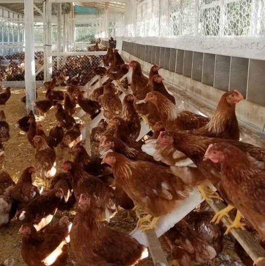 松崎さんが茨城産にこだわってつくる飼料を食べて、自然の風と光が入る鶏舎でのびのびと育つ鶏たち。そんな鶏たちの様子と生みたてたまごが見られるかも。