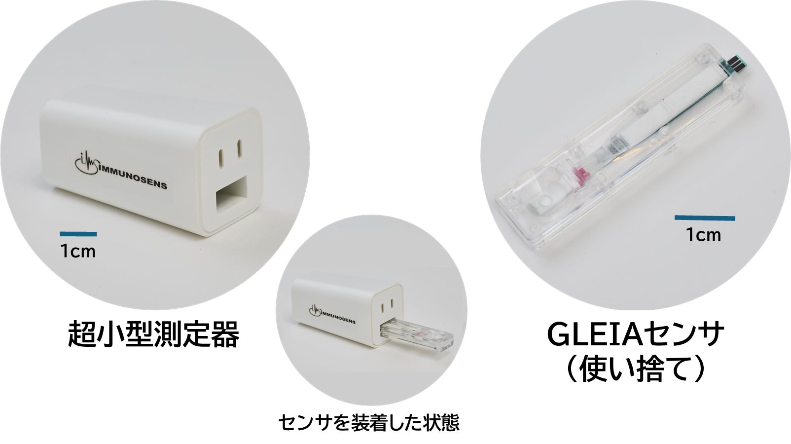 本取組みで使用するGLEIA技術は、当社創業者の国立大学法人大阪大学 産業科学研究所 特任教授 民谷栄一氏によって開発されました。免疫反応と電気化学技術を組み合わせることで、手のひらサイズの超小型機器で体内の様々なバイオマーカーを検出することができます。その感度は1兆分の1グラムと、大型検査機並みの性能を実現しています(GLEIA技術について、より詳しくは脚注※3をご参照ください)。