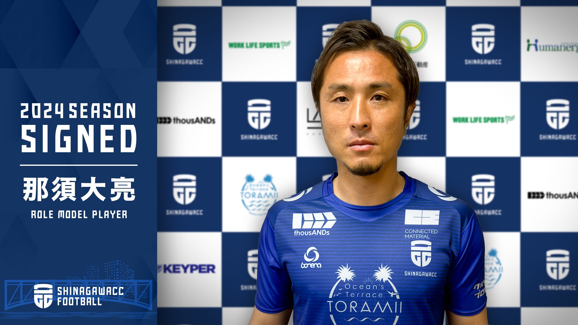 このたび品川 CCでは、那須大亮氏が 2024 シーズンより品川CC「ロールモデルプレイヤー」に就任し、活動していくことが決定しましたのでお知らせいたします。