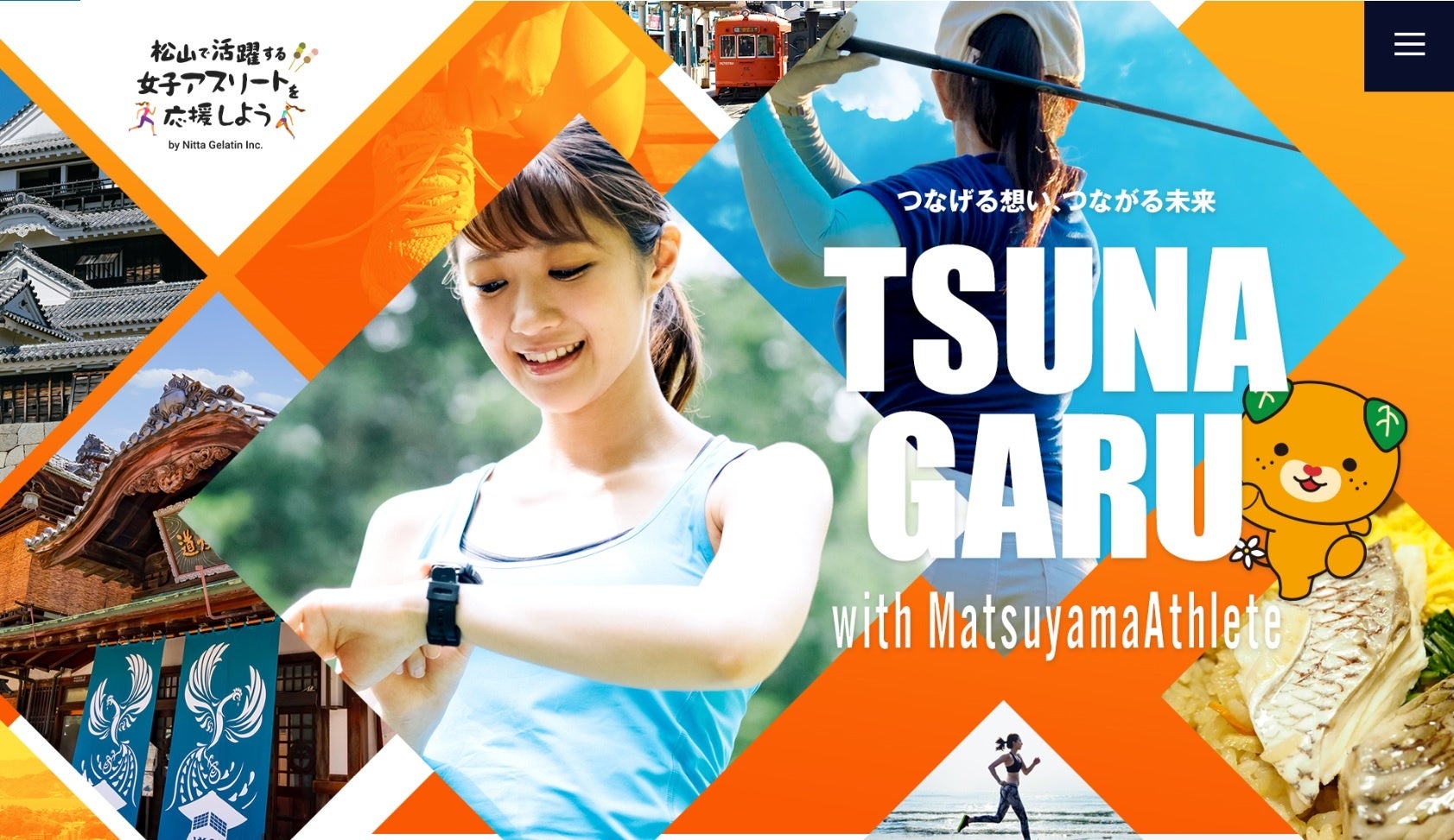 弊社は松山市で頑張る女子アスリートと、松山の人々の健康を応援する「松山プロジェクト」を2020年より開始いたしました。松山市で活躍するアスリートを紹介し、応援するウェブサイト「TSUNAGARU(つながる)」では、彼女たちの夢への熱い想いと、彼女たちを応援する人の想いをインタビュー記事として掲載し、地域密着型のアスリート支援を行っています。コラーゲンペプチド製品の提供を通して、女子アスリートはもちろん松山市の皆様に心と体の健康と美容をお届けしていきます。