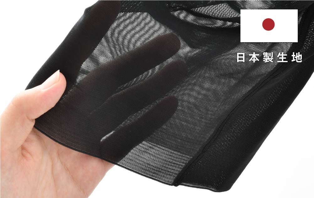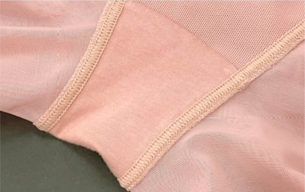 直接肌に触れるファンデーションだからこそ、素材にもこだわります。メインの生地(身生地)は、素肌のような着用感の日本製のパワーネットを使用しています。ソフトタッチで軽く、伸縮性の高い、洗ってもしわになりにくい素材です。