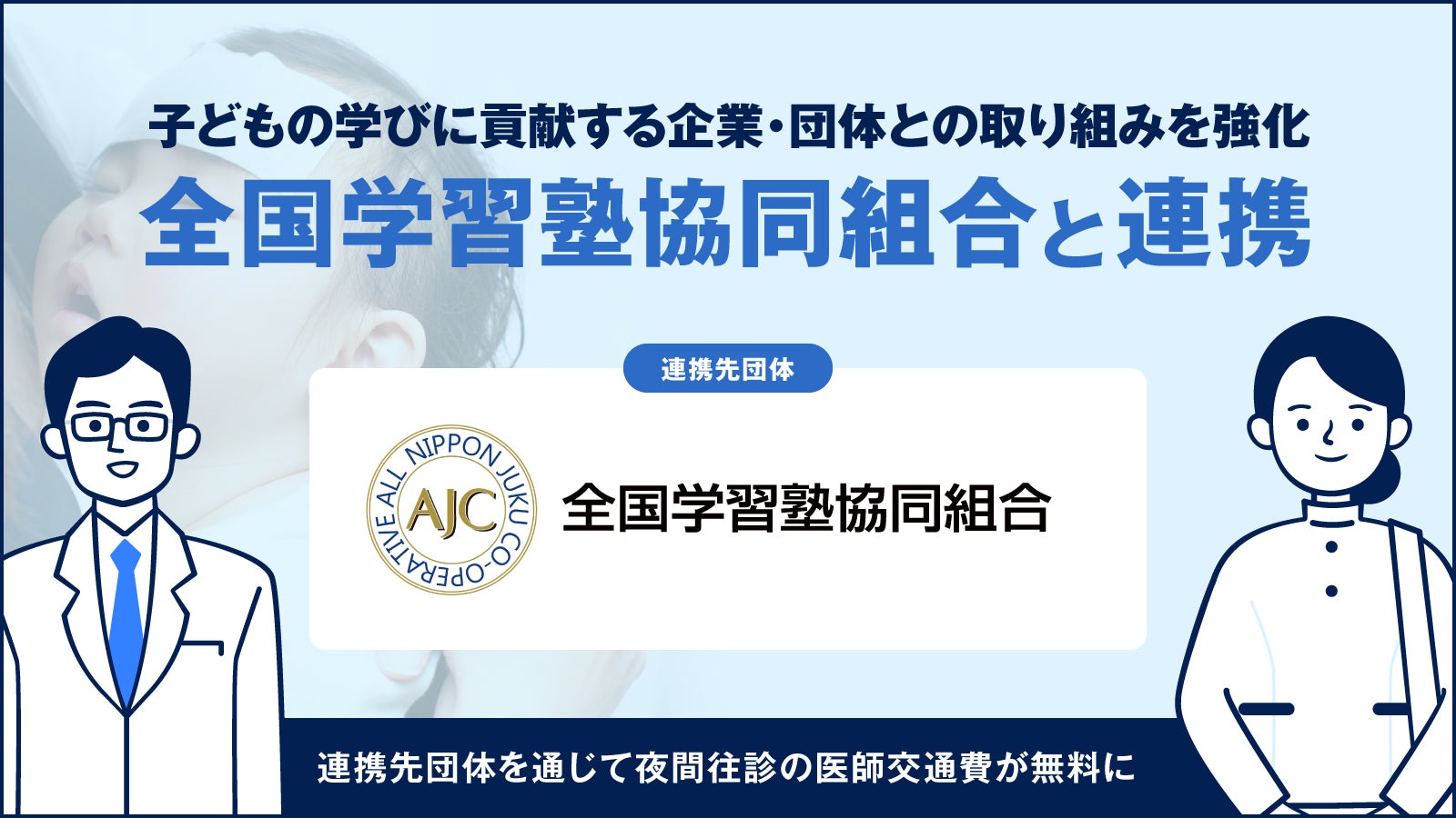 株式会社ノーススター(東京都中央区、代表取締役社長:田北 浩大、以下「ノーススター」)は、全国学習塾協同組合(東京都豊島区、理事長:森 貞孝)と連携し、全国学習塾協同組合に加盟する約300団体に通う子育て家庭に向けて、医師の交通費無料で夜間往診を利用できるプランを開始します。