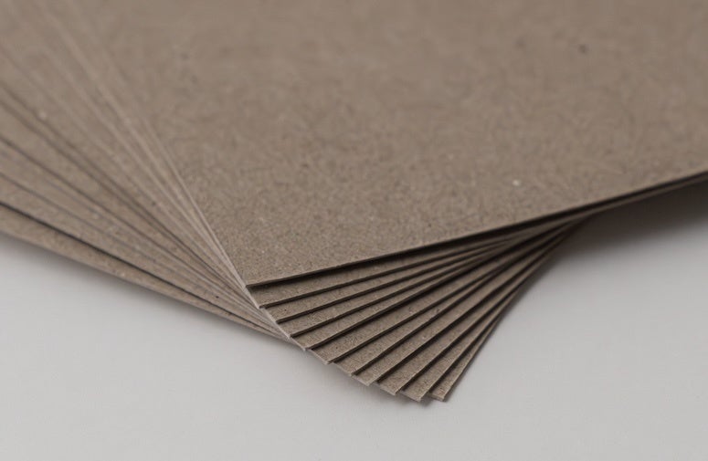 「薄炭クラフト」は、かつての宿紙の質感と趣を現代の技術で表現した再生紙です。食品残渣などの未利用資源から生まれる「バイオ炭」を段ボール古紙に混ぜ合わせ、宿紙のような柔らかなグレーの色合いと自然な風合いを再現しました。
