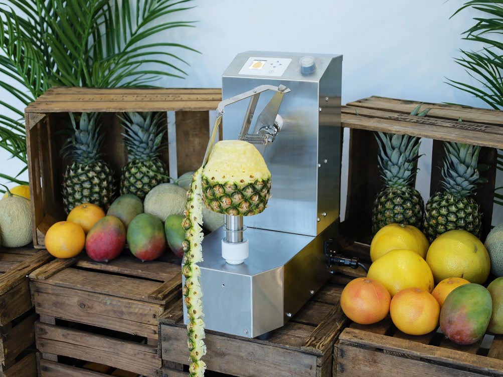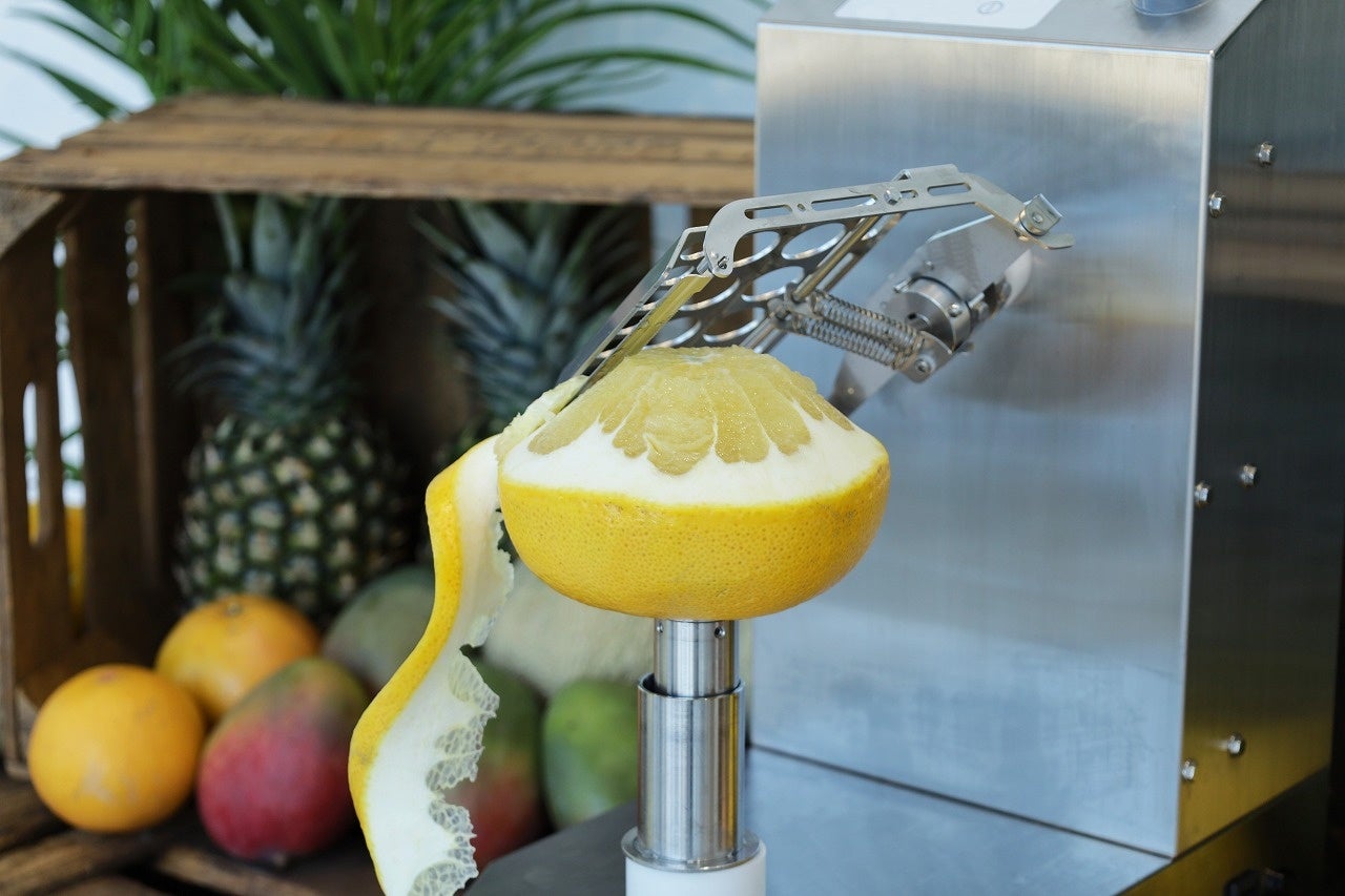 大型果実(パイナップル、メロン、マンゴー、カボチャ、グレープフルーツ等)専用。毎時約250個の処理が可能(原料形状・条件により異なります)