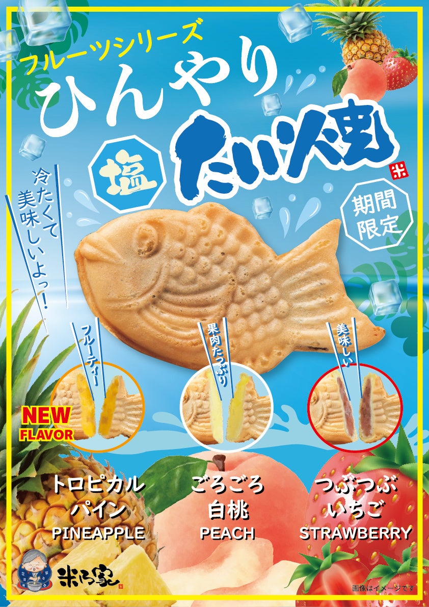 しっとり×ひんやりの新食感。果肉感たっぷりのフルーツクリームを包んだ「ひんやりたい焼」が、この夏限定で登場します!