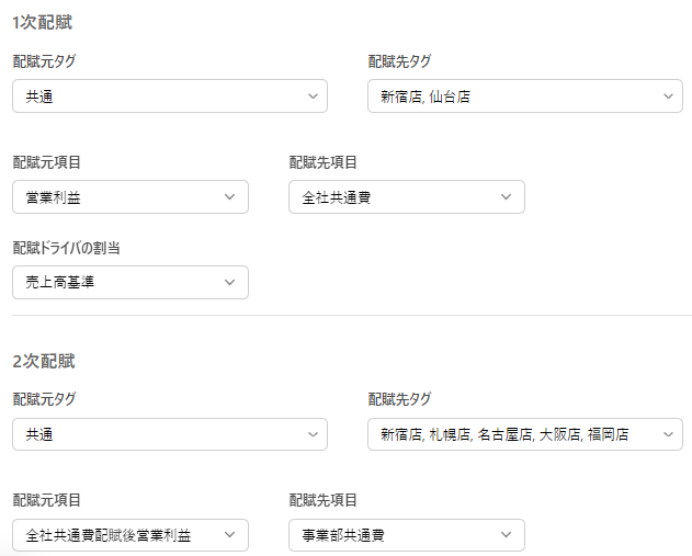 これにより、複雑な配賦計算を最小限の設定でレポートに反映することができ、より精緻な部門別損益管理を実行できるようになります。