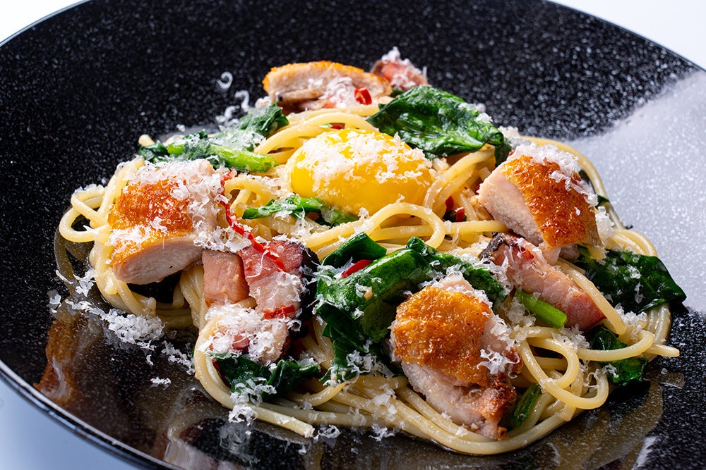 隠し味の日高昆布醤油と、下川六〇酵素卵、グラナパダーノチーズがキメテのペペロンチーノ!