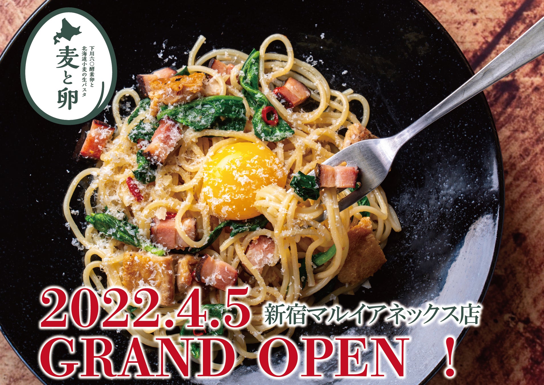 【新宿3丁目に新店OPEN!】北海道小麦の生パスタ専門店『麦と卵』が4月5日(火)グランドOPEN!