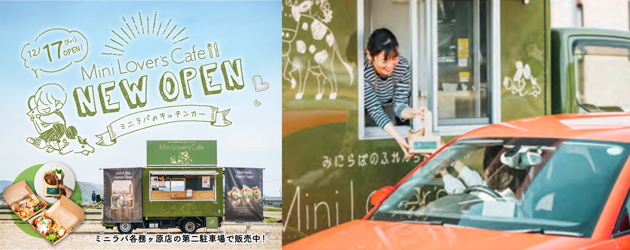 Mini Lover's Cafe各務原店では、実店舗の『和×カフェ』Mini Lover's Cafe各務原店と、店舗の斜向かいに位置する第二駐車場でドライブスルーが可能なキッチンカーによるフレンチトースト専門店が出店されています。