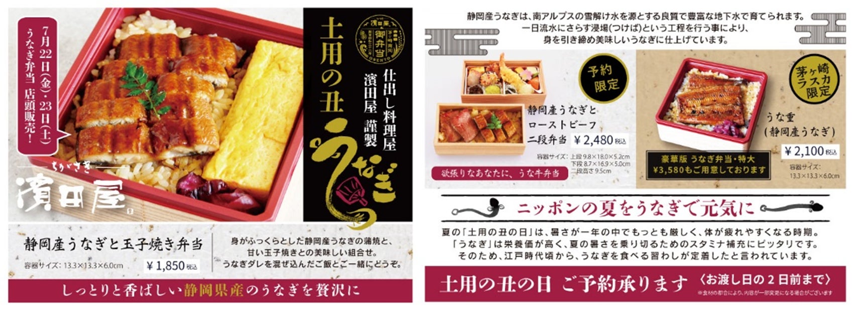 まん福ホールディングスグループのちがさき濱田屋(株式会社浜田屋 本社:神奈川県茅ヶ崎市、代表取締役社長:戸倉大輔、以下 「濱田屋」)は、土用の丑の日(7月22日(金)・23日(土))限定で、静岡県産うなぎを使用した「うなぎ弁当」を販売いたします。
