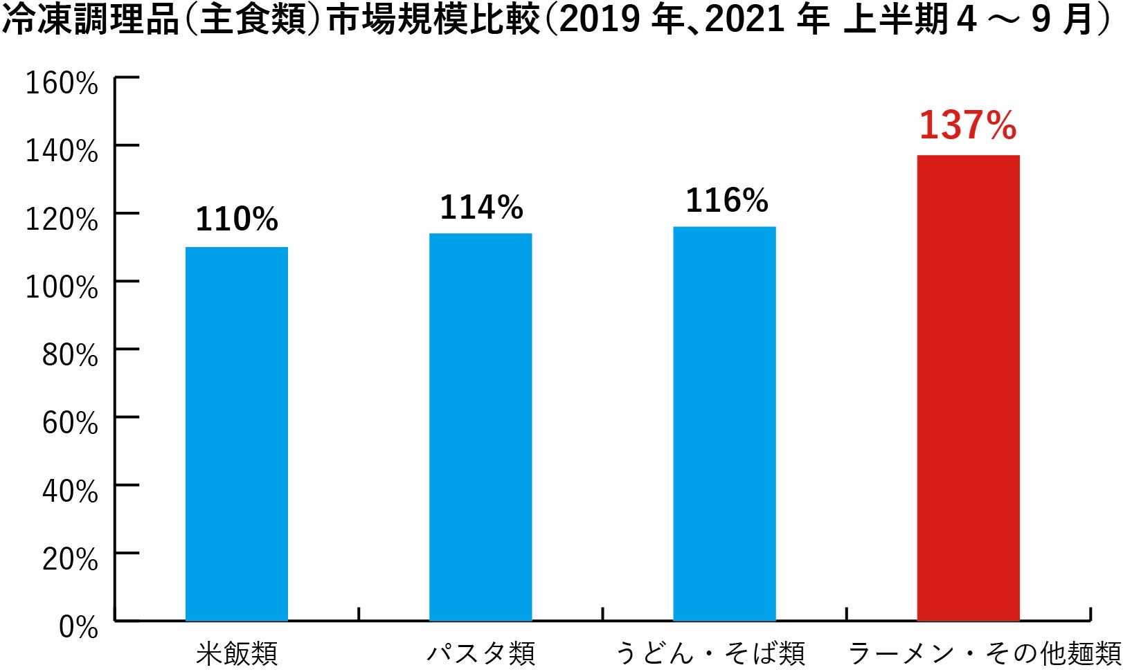 表2:冷凍料理品(主食類)市場規模比較(2019年、2021年 上半期4-9月 前々年比