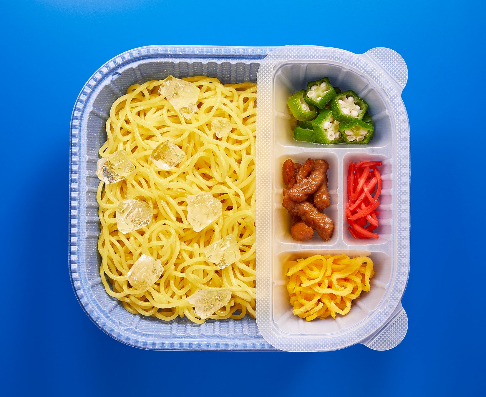 商品は麺と具に分別されています。マイクロ波の影響を受けにくい氷の特性を利用した独自技術を採用。電子レンジ調理後にも適度に氷が残ることで、麺を茹でることはもちろん冷やす手間も省き、冷たい状態で食べることができます。