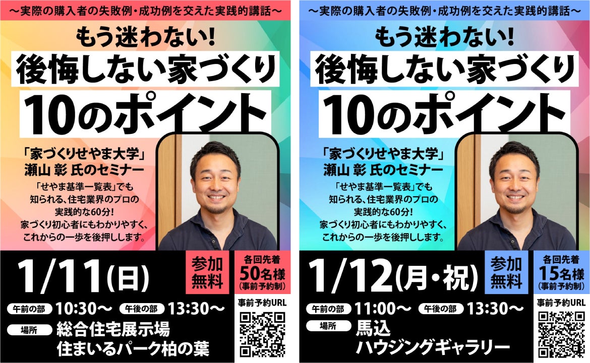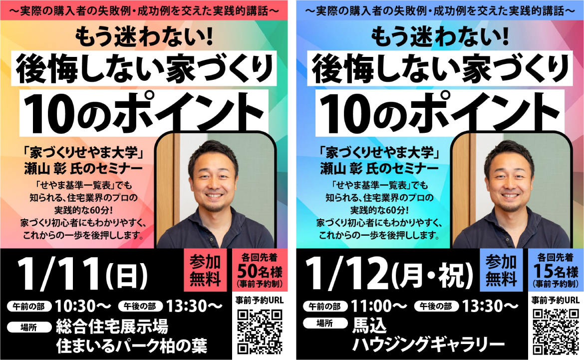 2026年1月11日(日)「総合住宅展示場 すまいるパーク柏の葉」、1月12日(月・祝)「馬込ハウジングギャラリー」にて、これから家づくり検討者を対象とした特別セミナーを実施。当日の様子を報告します。