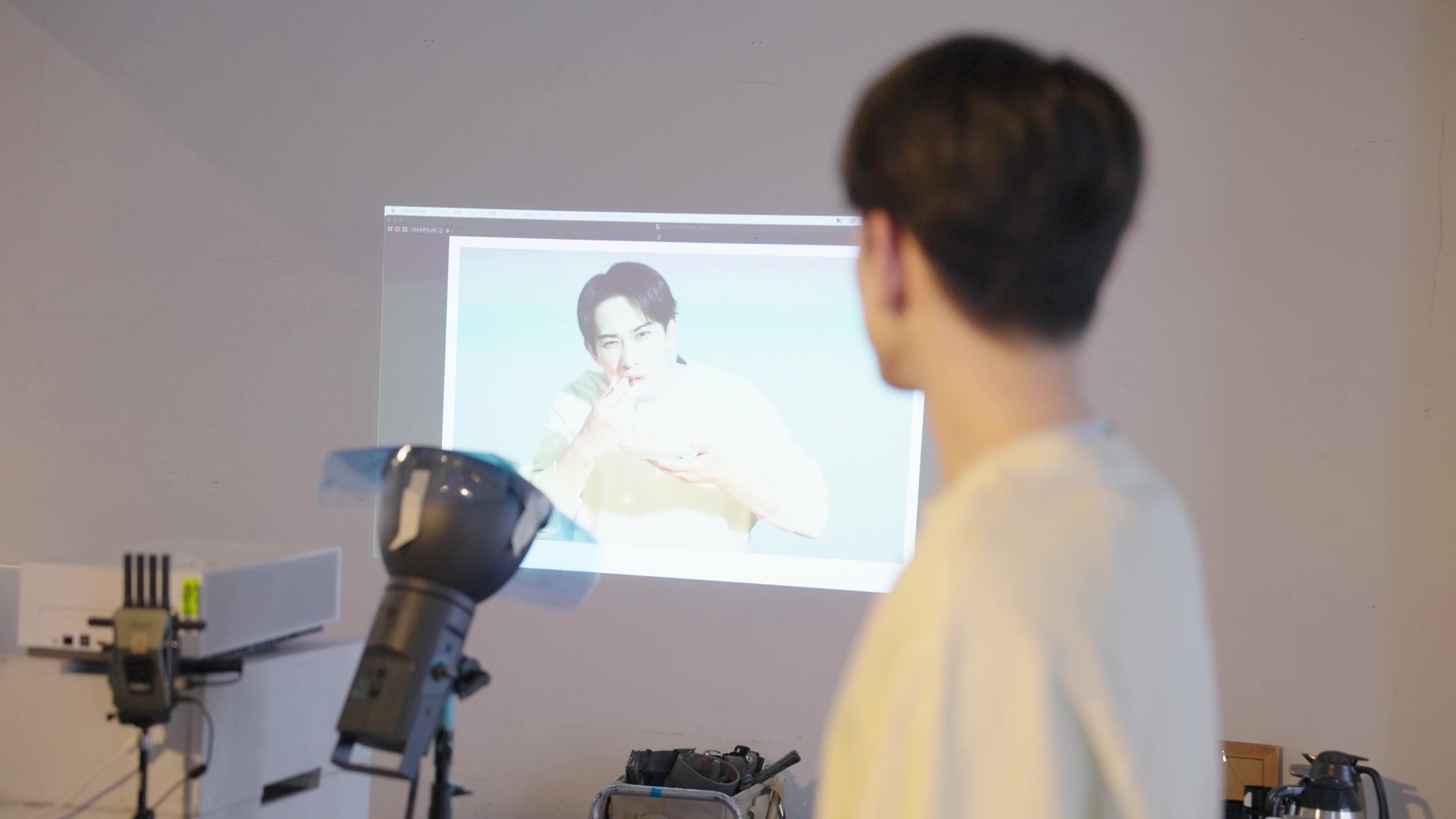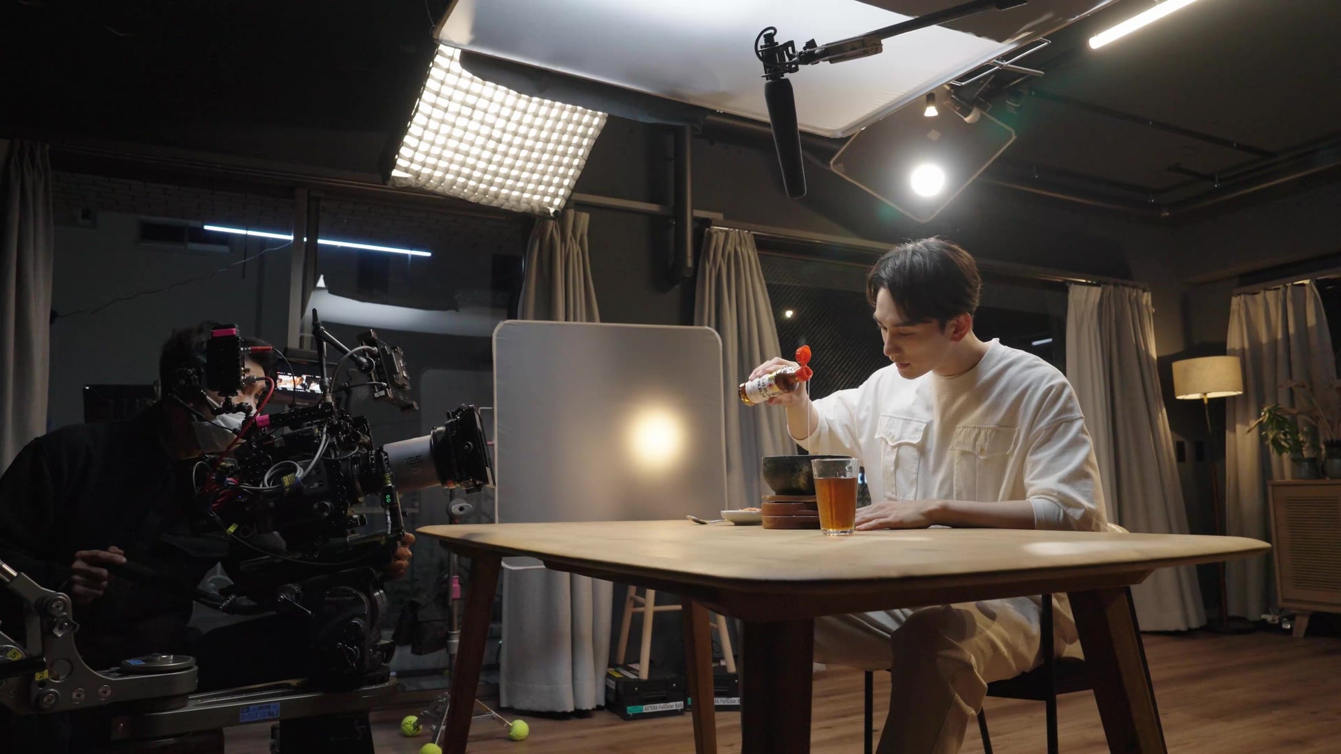ホームスタジオを使用して行われたTVCM 撮影。温かみのある空間にベージュの衣装を身に纏って登 場した町田さん。監督との打ち合わせや細かな調整もスムーズに進み、撮影は終始、和やかな雰囲気の中で行われました。町田さんのさわやかな笑顔を見た監督からは「すごくいい!」と絶賛の声が飛び、町田さんが料理を頬張るシーンでは、スタッフから「美味しそう!」という声が漏れる場面もありました。