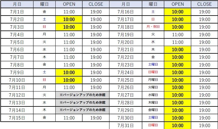 - 7月の営業時間につきまして