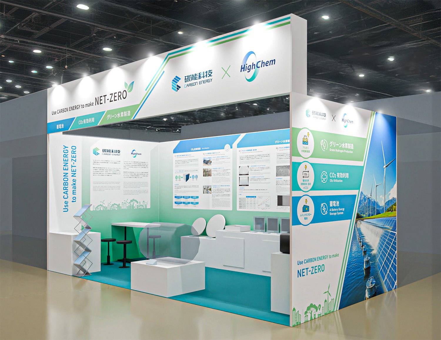 当社とカーボンエナジー社の共同ブースでは、『Use CARBON ENERGY to make NET-ZERO』をテーマに、カーボンニュートラル実現に向けた、カーボンエナジー社の革新的技術および製品を紹介します。