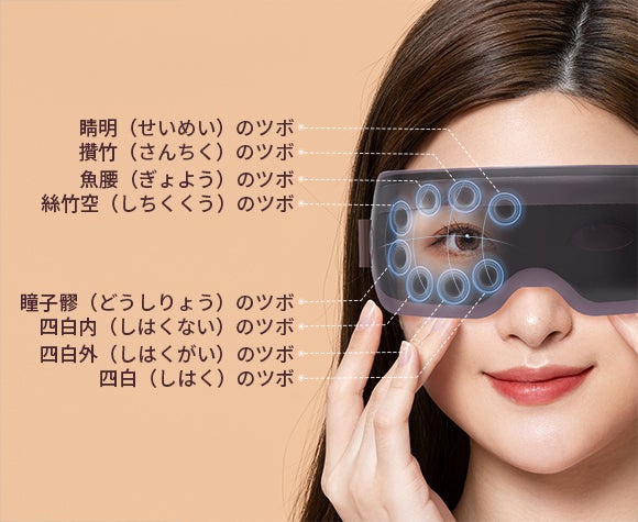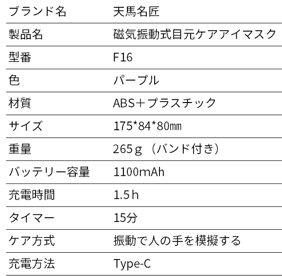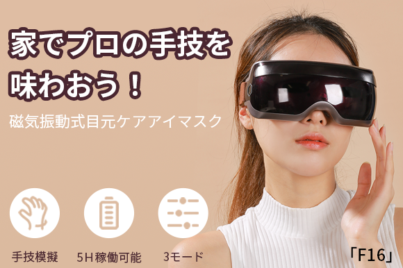 「F16」とはプロの手技を再現し、ツボを刺激することで目にアプローチし、どんなシーンでも使用できる磁気振動式目元ケアアイマスクです。