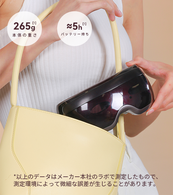265gでカバンに入れてもかさばらないサイズで、出張先・旅行先でも簡単に目元ケアが楽しめます。