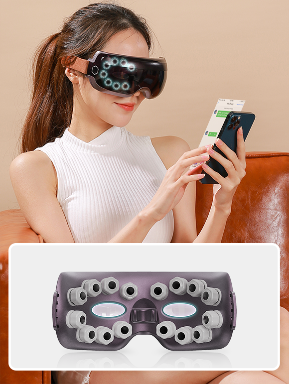 「目元ケアアイマスクを頭に掛けたら、外さない限り何も見えなくてちょっと不便だなあ」というお客様の声に応じ、私たちは「F16」の表面に透明な材料を使用し、外側が見える「穴」を開けました。目のケアをしていても臨時の仕事やチャットに対応でき、非常に便利です。