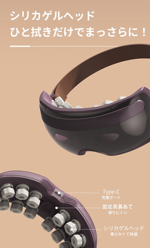 顔に接触する振動ヘッドは環境保護の要求に合った人体に無害なシリカゲルで作られるので、掛け心地もよく、安心してご利用いただけます。
