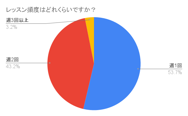 週1回のレッスンを選択している人が最も多く、次に週2回のレッスンを選択している人が続いています。週3回以上の頻度でレッスンを受けている人はごく少数でした。