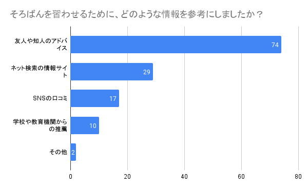 友人や知人からのアドバイスが最も多くの人にとって重要な情報源となっていることがわかります。ネット検索やSNSの口コミも一定数の人にとって有益な情報源であり、学校や教育機関からの推薦も一部の人に影響を与えているようです。