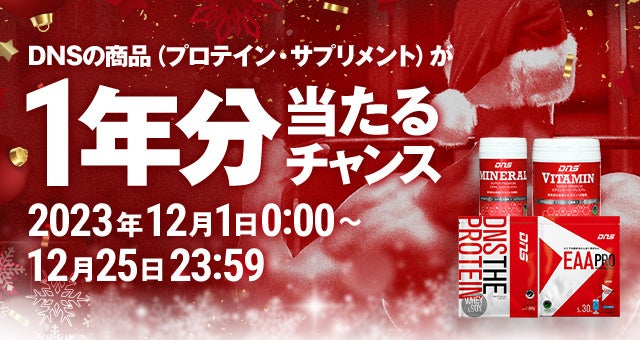 スポーツニュートリションブランドDNS(ディーエヌエス)を展開する株式会社DNSでは、公式オンラインショップでDNS商品1年分が当たる「DNSからクリスマッスルプレゼント」キャンペーンを開催中です。