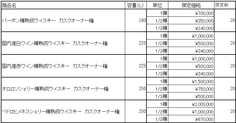 他社では1樽150万円程度の価格ですが、日本の樽販売は価格が高いと考え、カスクオーナーの裾野を広げたく、今回限定数ながら、特別価格で販売します。