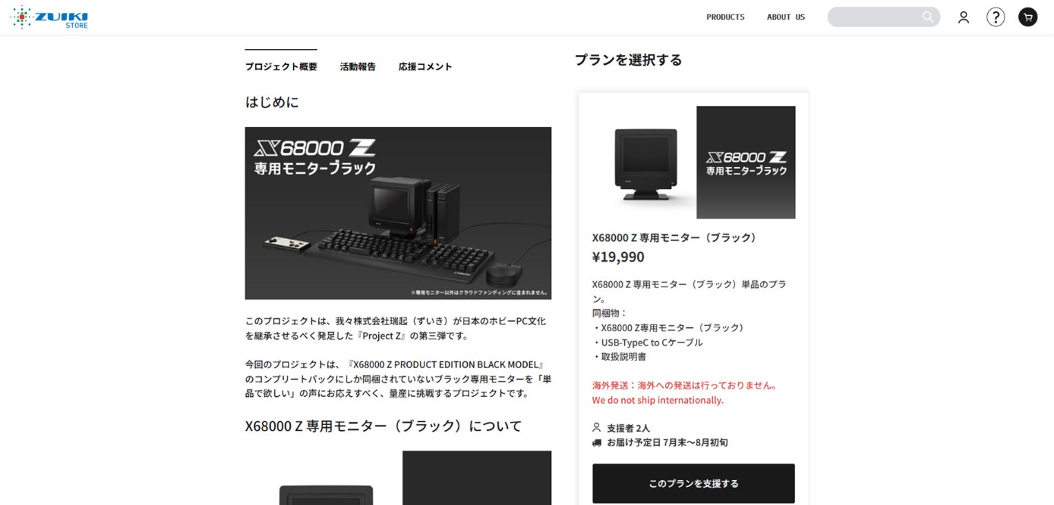 瑞起公式ECサイト「ZUIKI STORE」内にクラウドファンディング機能を新設!第一弾としてX68000 Z専用モニターブラックのプロジェクト始動!