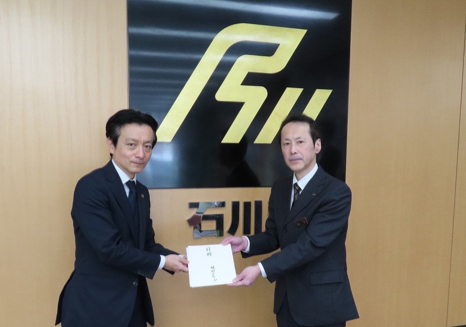 (写真正面右:石川県大阪事務所 所長 山下 幸則様、正面左 株式会社 延田グループ 社長室 室長 笈川 満)