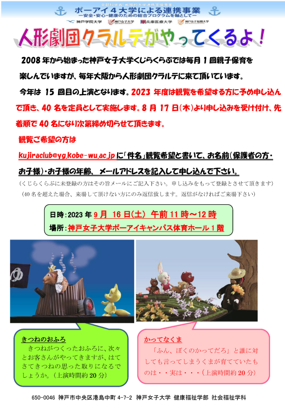 くじらくらぶメールアドレス:kujiraclub@yg.kobe-wu.ac.jp