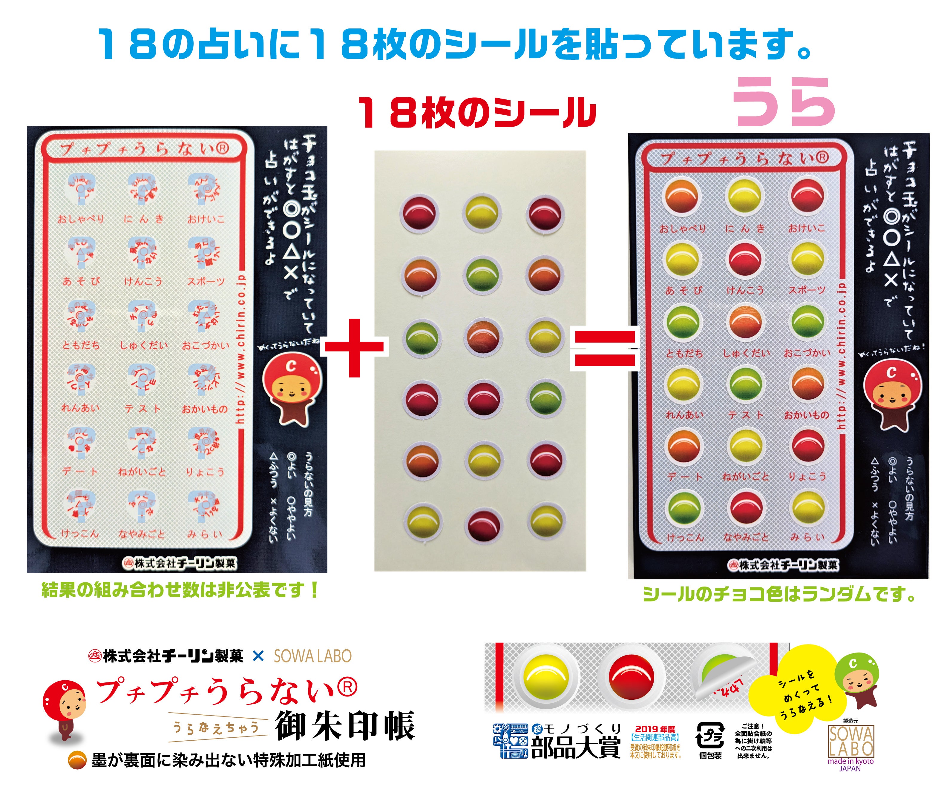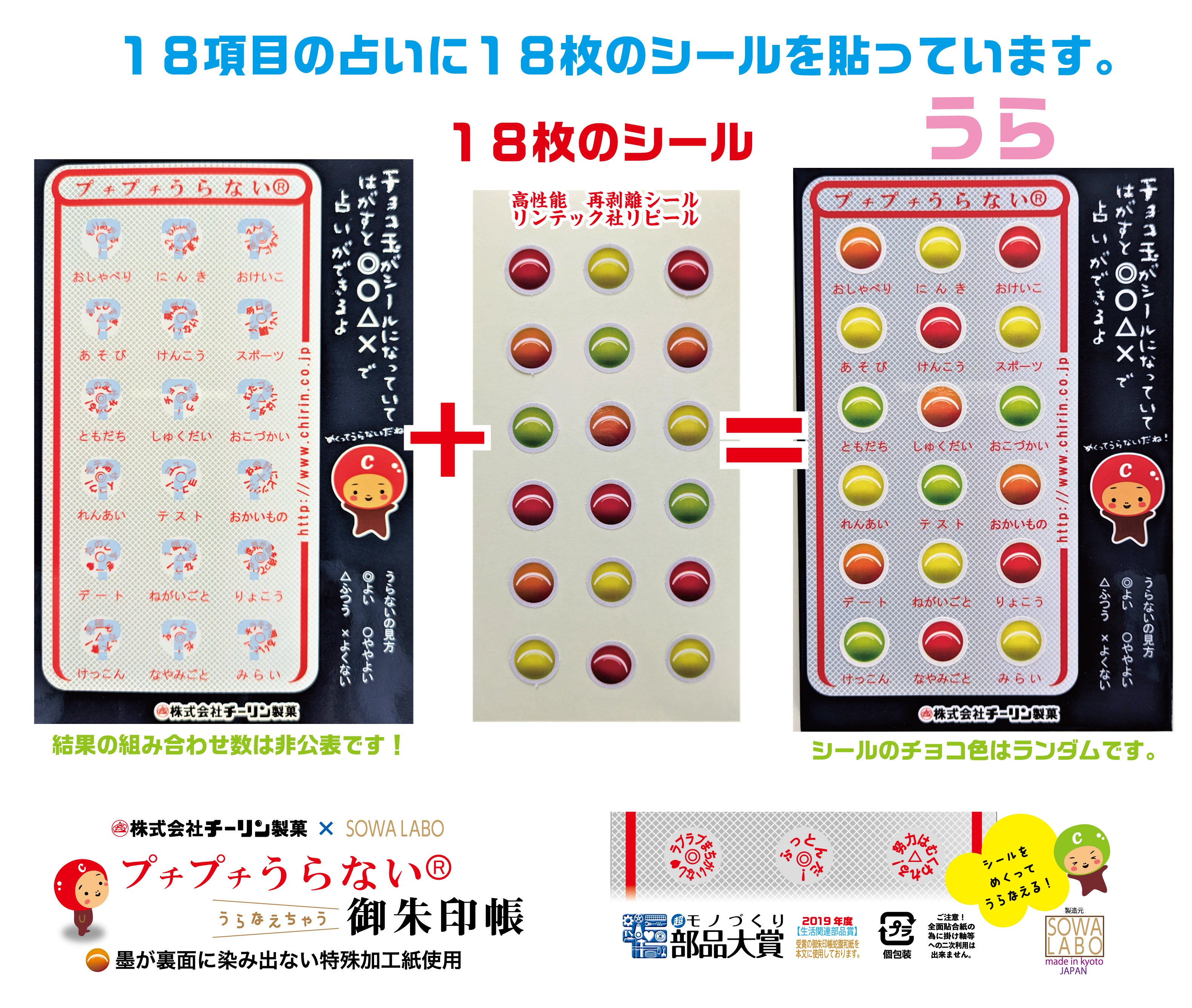 チョコシールの色はランダムです。色で選んでも結果はその時の運だめしになります!