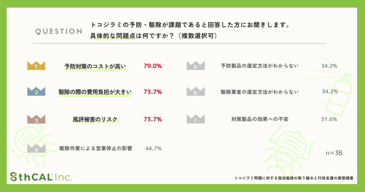 これらの結果は、トコジラミ問題が単なる衛生管理の域を超え、施設の存続にも関わる重大な経営リスクとなっていることを示しています。