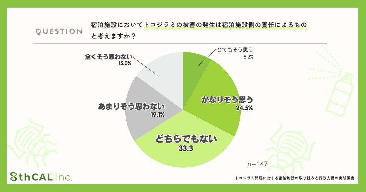 一方で、トコジラミの蔓延を防ぐための対策が不十分であれば、施設側にも一定の責任が生じるとする回答も32.7%ありました。