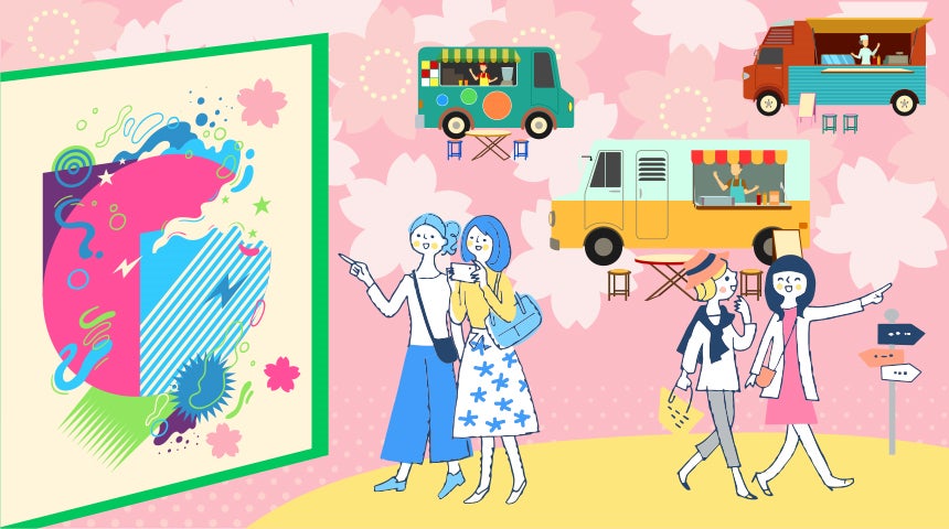 本イベント限定で出店するキッチンカーのエリアには美大生たちによる、「レトロ・かわいい・桜・和POP」をテーマに創作したアート作品が設置され、アートを感じながらお腹も満たされる魅力的な空間になります。美大生たちによって、どんな空間が創り出されるか必見です。