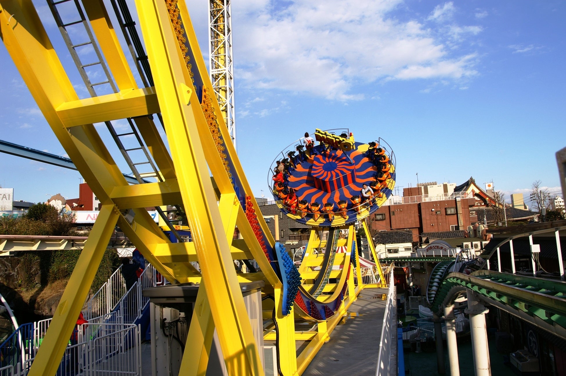スリルMAX!いつもは時計回りに回転しているディスク・オーの座席部分が、特別Ver.では途中から反時計回りに!!