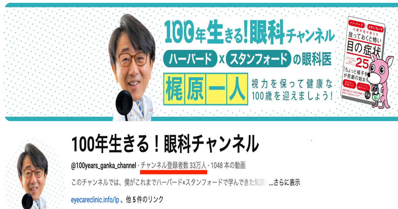 眼科かじわらアイ・ケア・クリニック(東京都墨田区錦糸町、院長:梶原一人)が運営するYouTubeチャンネル【100年生きる!眼科チャンネル】の登録者数35万人を突破いたしました!2022年のチャンネル開設以来、約4年間にわたり情報発信を続け、数々の挑戦と転機を経て、このたび 35万人という新たな到達点 を迎えることができました。