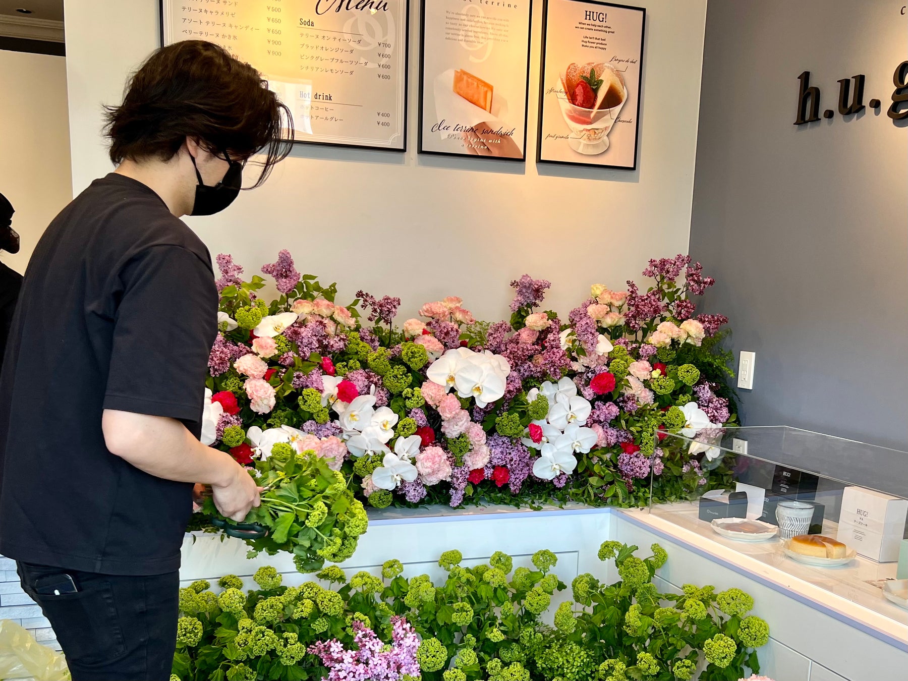 そんな想いとともに、1つずつ手作りでチーズテリーヌを作っています。お客様の「美味しい」という笑顔が、何よりの宝物。h.u.g-flower久屋大通店OPENの際には、代表の遠藤が自ら店頭の花を束ねました。