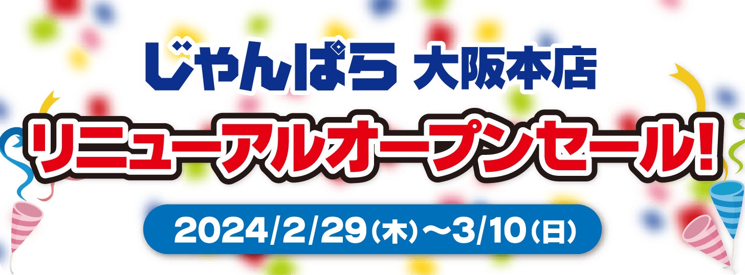 2024年2月7日(水)より店内改装のため一時閉店となるじゃんぱら大阪本店が、2024年2月29日(木)に装いも新たにリニューアルオープン!!