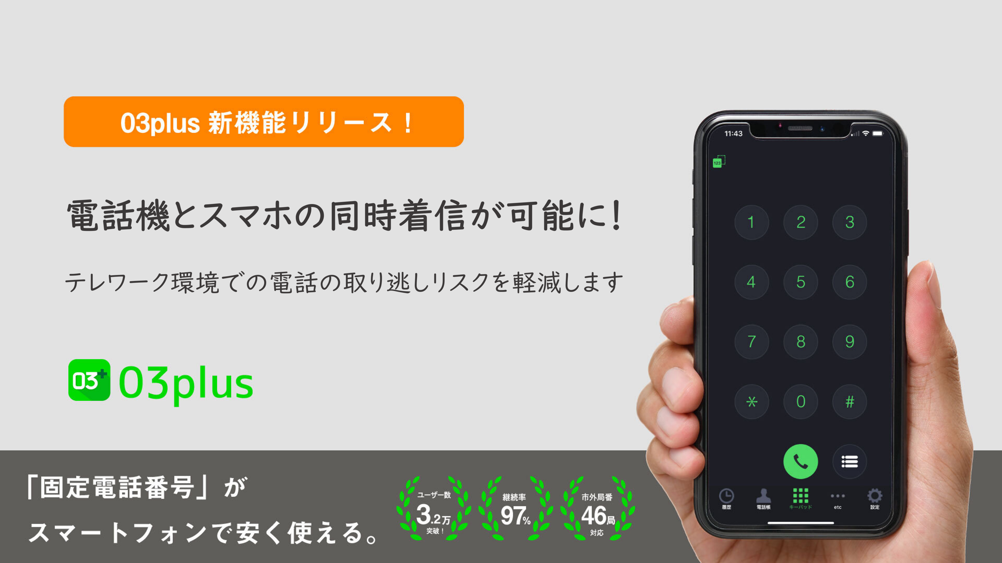 回線工事不要のクラウドPBX「03plus」を提供する株式会社グラントン(本社:東京都渋谷区、代表取締役:井本賀津雄、以下「当社」)は、 2022年1月26日に、03plusの新機能として固定電話機とスマホアプリの同時着信機能を追加したことをお知らせいたします。