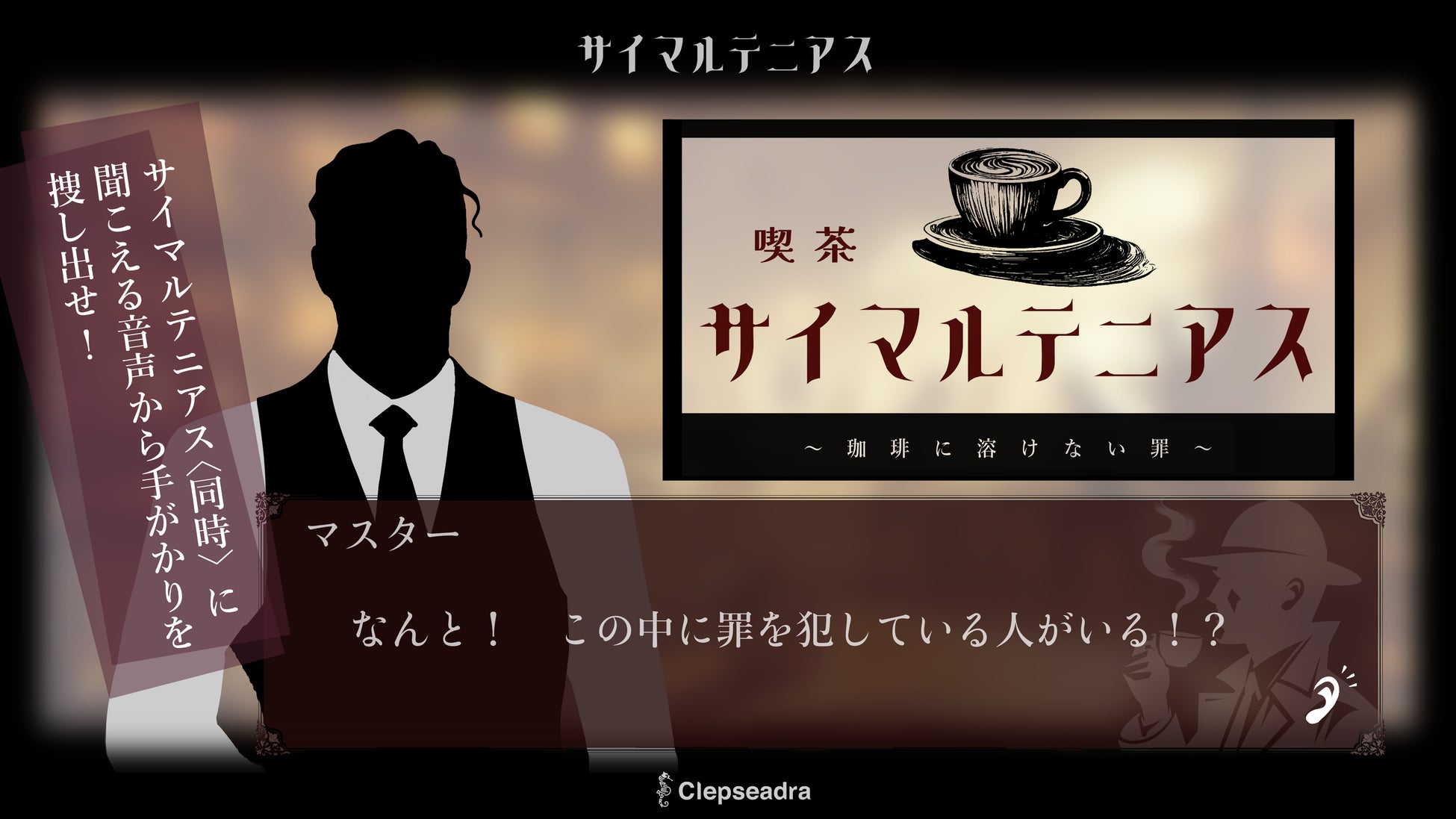 クレプシードラ株式会社(本社:東京都大田区、代表取締役:今誉)は、独自の空間音響技術Re:Sense™を活用したショート推理ゲーム『喫茶サイマルテニアス〜珈琲に溶けない罪〜』を公開しました。本作は、実際の喫茶店にいるような臨場感のなかで複数の会話を聞き分けて推理を行う、「シチュエーションイマーシブ型音声作品」です。