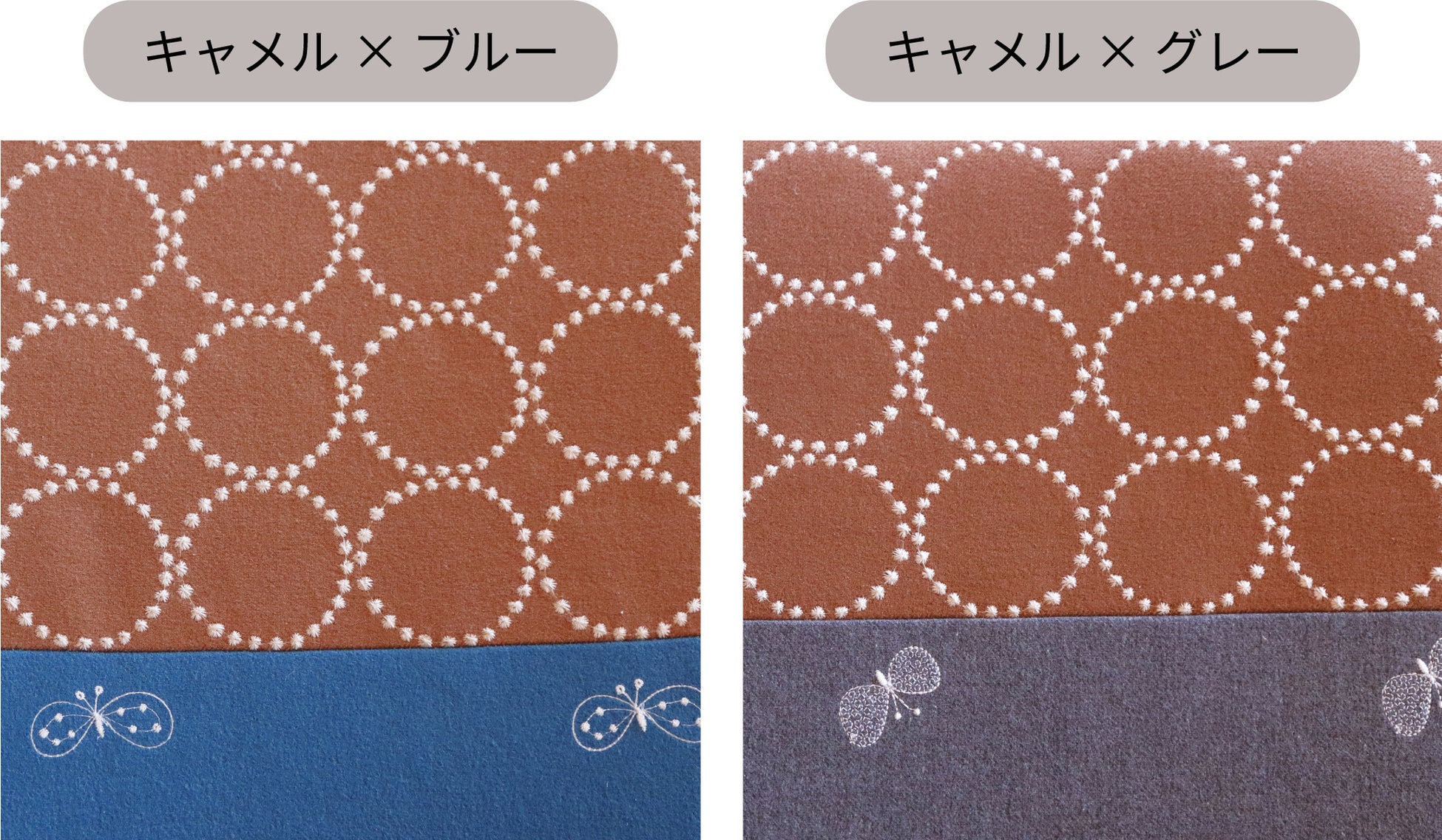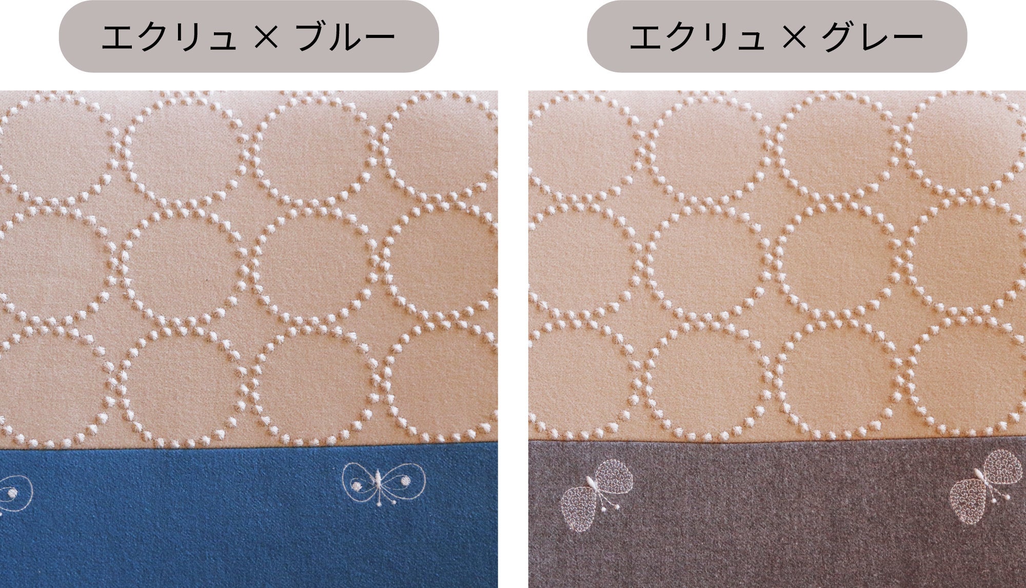 ■生地カラー:(エクリュ/ブルー、エクリュ/グレー、キャメル/ブルー、キャメル/グレー)