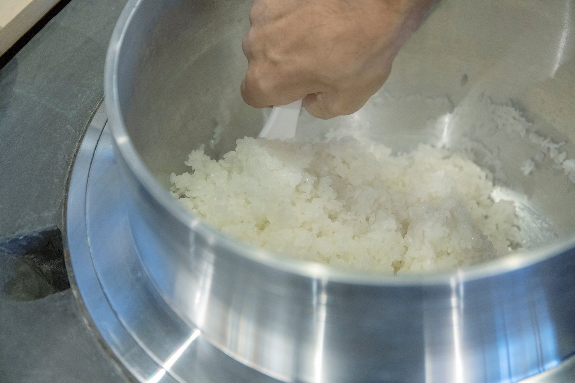 お米の美味しさを決めるのに、ご飯のほぐし方もあります。蒸らしが終わったら直ぐに蓋を開けて、余分な蒸気を飛ばしながら、くっついている米粒同士を、一粒ごとに切り離すように、サクサクと切るようにほぐします。このひと手間で、時間がたってからの食感や美味しさがかなり変わってきます。