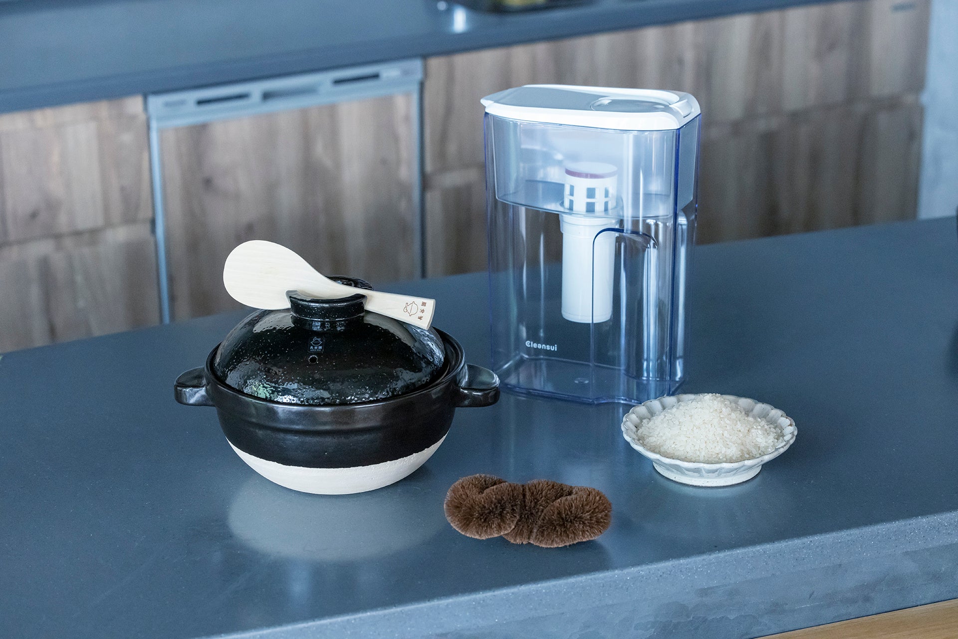 お米といったらやっぱりおいしいお水が必要ですよね。クリンスイ和食シリーズお米用浄水ポットもセットにしました。五ツ星お米マイスターの西島さんに監修いただいた和食のためのクリンスイお米用ポット型浄水器は「お米をおいしく炊くためにお米専用のお水があればいいのに」という想いから生まれた商品です。五ツ星お米マイスターの知識とクリンスイの独自技術を掛け合わせて誕生したこの商品はお米の甘みやうまみをより感じられます。