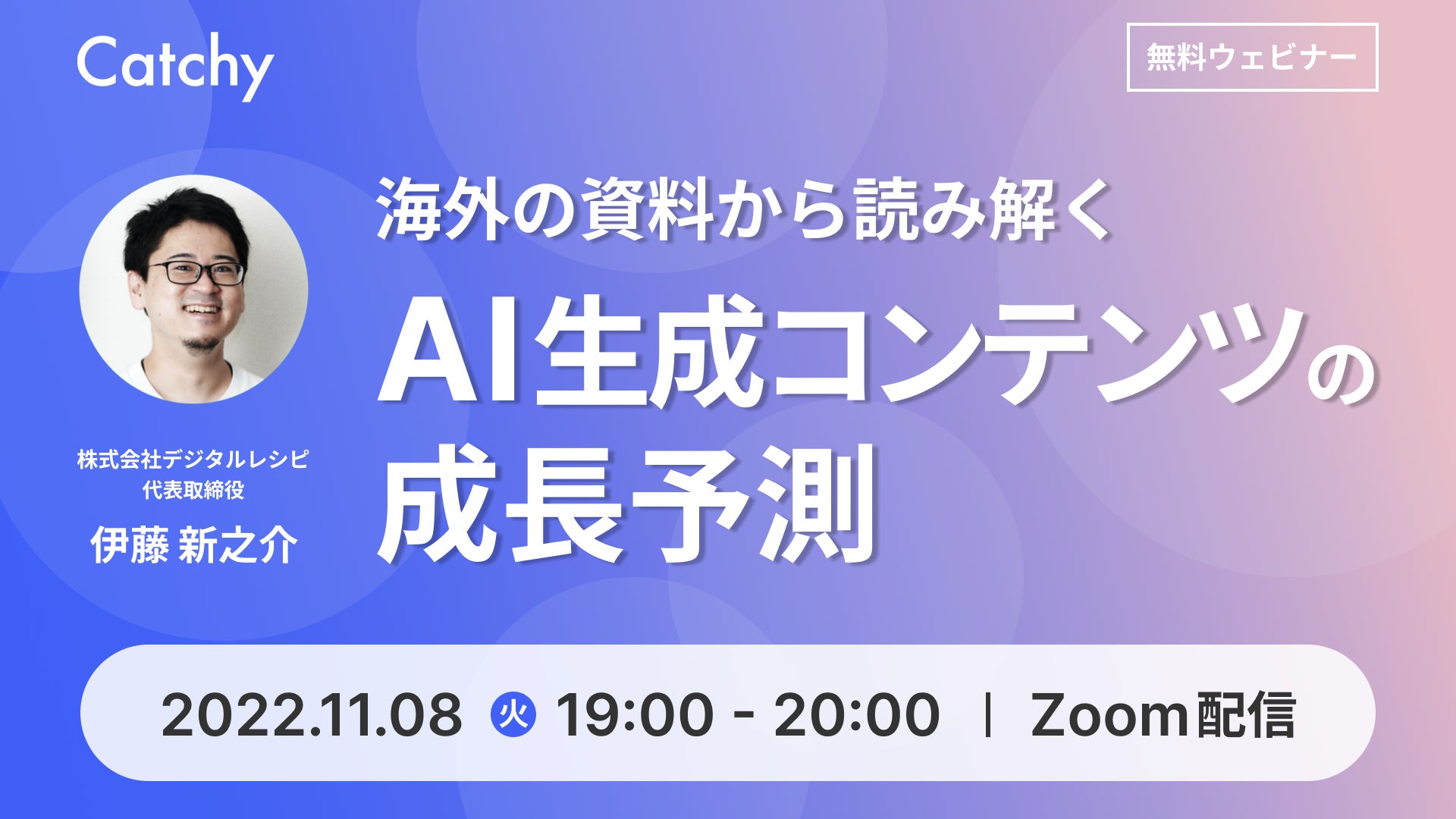 国内最大級のAIライティングアシスタントツール「Catchy」の運営会社であるデジタルレシピのCEO伊藤新之介が、最新のAI生成コンテンツのトレンドを解説