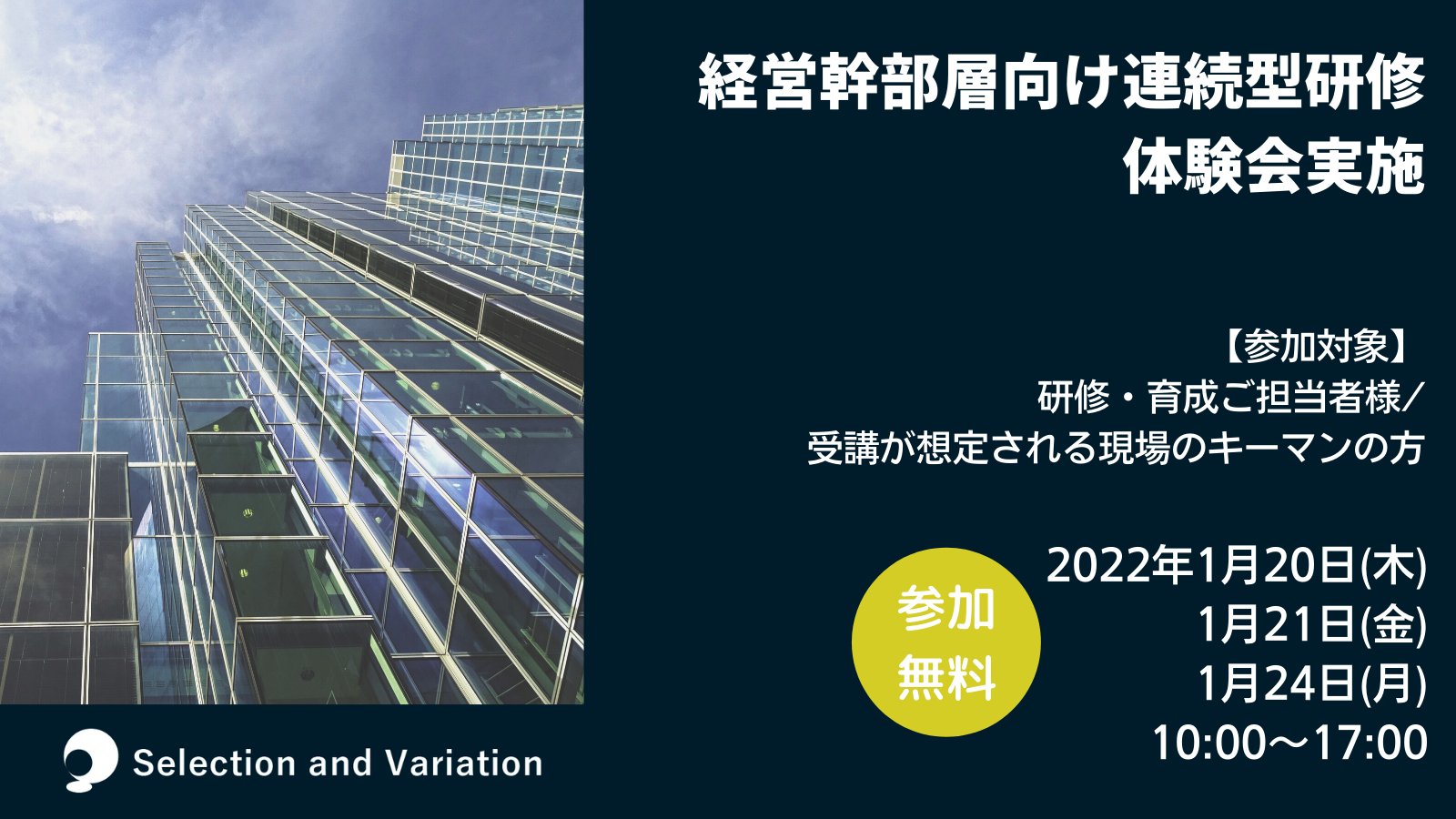 【2022/1/20・21・24限定開催】経営幹部層向け連続型研修 無料体験会実施のお知らせ