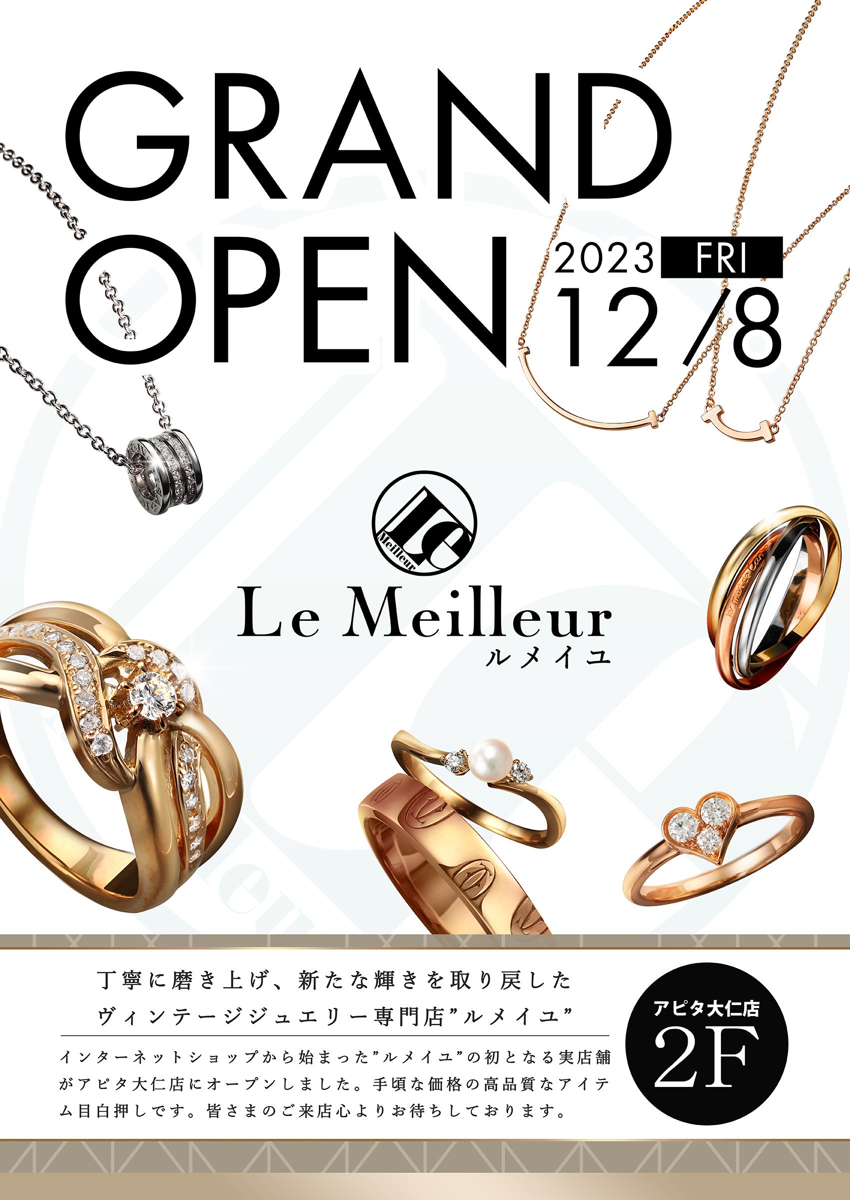 ルメイユはこれまでオンライン(https://www.rakuten.ne.jp/gold/lemeilleurbijoux/)のみでの販売であったが、リアル店舗としては初の出店。