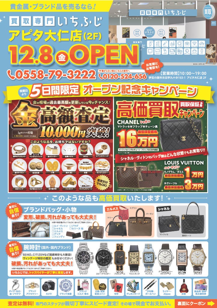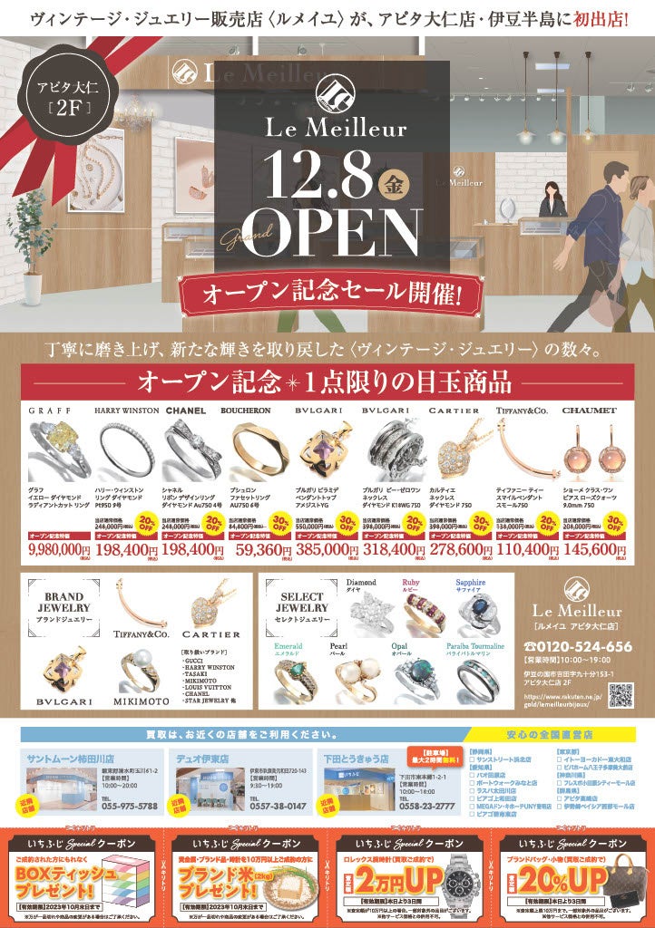 【静岡県伊豆の国市初出店】ブランド・リユース「買取専門 いちふじ」伊豆の国市のアピタ大仁店に12月8日(金)に出店 ヴィンテージジュエリーショップ「ルメイユ」が併設の新業態で初出店