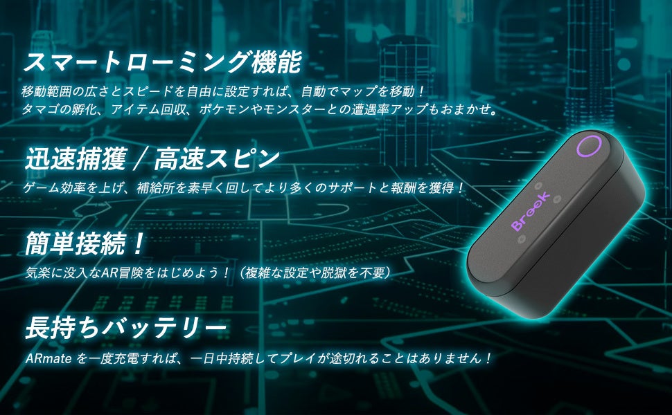 コミュニティデイや大型イベント、ジム戦、そして日常のレベル上げまで、すべてをもっと効率的に、もっと自由に楽しめます。天候や移動距離に縛られることなく、自宅や通勤中でもポケモンを捕まえ、ポケストップを回し、タマゴを孵化させることが可能です。「ARmate」があれば、これまで逃していたポケモンも確実に手にでき、あなたのポケモンGOライフは大きく進化します。さらに『モンスターハンターNow』や『ドラゴンクエストウォーク』など、多彩なARゲームにも対応しているので、複数タイトルを遊ぶユーザーにとっても理想のデバイスです。さあ、次世代のプレイスタイルを切り拓き、いつでもどこでも冒険を楽しみ尽くしましょう。